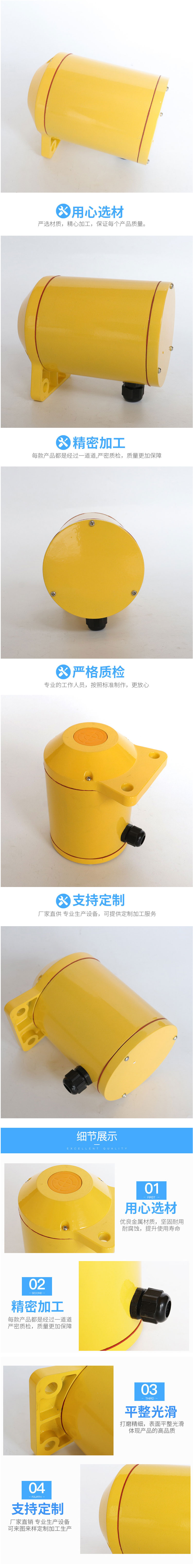 產品特點:欠速開關放置在防風雨的密封、抗腐蝕外殼內,非接觸式接近探測器,壽命長,維護費用低,無運動部件、無磨損,安全壽命長,延遲啟動-旋轉設備啟動過程中尚未達到工作速度時,10秒鐘延遲報警。