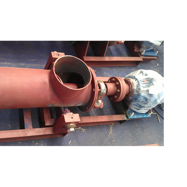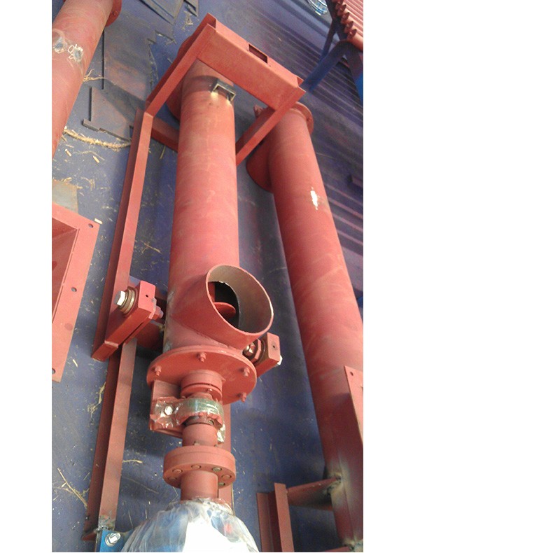 3 、各傳動部位均采用浮動連接方式,吊軸承為萬向節結構,使螺旋體,吊軸承和尾部總成形成一個整體旋浮體,在一定范圍內可隨輸送阻力自由旋轉避讓,不卡料,不堵料。